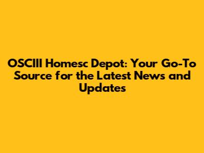 OSCIII Homesc Depot: Unveiling The Latest News And Updates