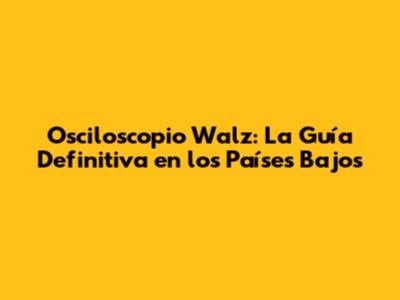 Consejos para Comprar un Osciloscopio Walz en los Países Bajos