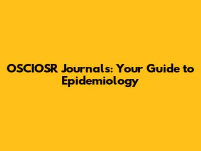 OSCIOSR Journals: Your Guide To Epidemiology