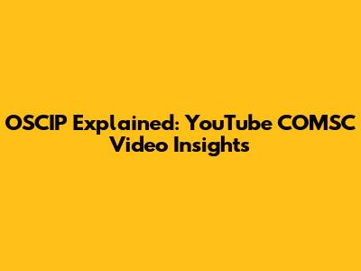 OSCIP Explained: YouTube COMSC Video Insights