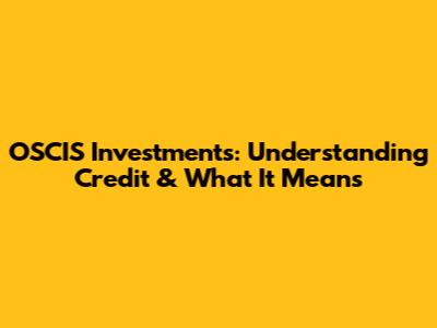OSCIS Investments: Understanding Credit & What It Means