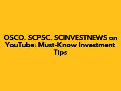 OSCO, SCPSC, SCINVESTNEWS On YouTube: Must-Know Investment Tips