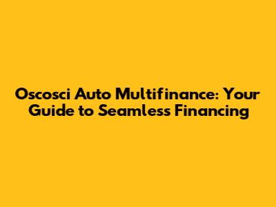 Oscosci Auto Multifinance: Your Guide To Seamless Financing