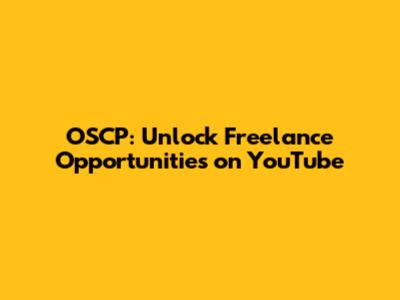 OSCP: Unlock Freelance Opportunities On YouTube