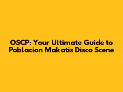 OSCP: Your Ultimate Guide To Poblacion Makati's Disco Scene
