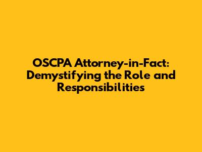 Alright, let's start with the basics. The term Attorney-in-Fact might sound intimidating, but trust me, it's not as scary as it seems. An Attorney-in-Fact is simply a person you authorize to act on your behalf in legal and financial matters. Think of them as your designated stand-in, your trusted representative who steps in to handle things when you can't or don't want to. This authority is granted through a legal document called a Power of Attorney. This document outlines the specific powers and responsibilities the Attorney-in-Fact has. It's like handing someone the keys to a part of your life, with clear instructions on how to use them. The scope of their authority can be incredibly broad, or very specific, depending on what you outline in the Power of Attorney document. They can manage your bank accounts, pay your bills, sell property, or make healthcare decisions, depending on the powers you grant them. It's a crucial tool for anyone planning for the future, whether you're dealing with old age, illness, or simply want someone to manage your affairs while you're traveling. It's important to differentiate the Attorney-in-Fact from an attorney at law. The Attorney-in-Fact doesn't need a law degree. Their authority comes from the power of attorney. This is different from a lawyer who needs a law degree and can represent people in court. If you have been appointed an Attorney-in-Fact, you must execute the responsibilities you were given through the power of attorney properly. They are held to a fiduciary duty, meaning they must act in your best interests and handle your affairs with honesty and care. Now, let's explore what the OSCPA has to do with this and how it all works together.