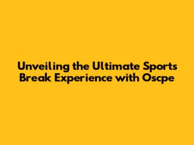 Unveiling the Ultimate Sports Break Experience with Oscpe