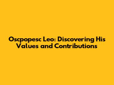 Oscpopesc Leo: Discovering His Values And Contributions