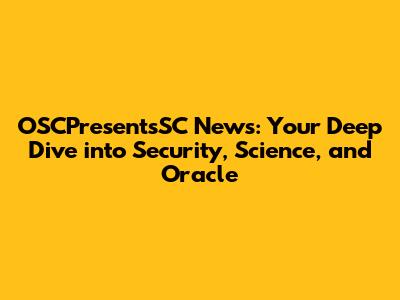 OSCPresentsSC News: Your Deep Dive Into Security, Science, And Oracle