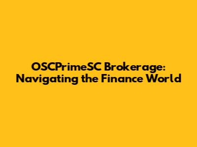 OSCPrimeSC Brokerage: Navigating The Finance World
