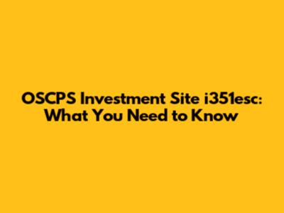 OSCPS Investment Site I351esc: What You Need To Know