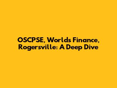 Let's get right into it, guys. We're diving deep into OSCPSE, Worlds Finance, and Rogersville. Think of this as your friendly guide to understanding what's happening in this corner of the financial world. No jargon overload, promise! We'll break it down, step by step, so you can follow along without feeling like you need a PhD in economics. Whether you're an investor, a local business owner, or just curious about what makes Rogersville tick, this is for you.