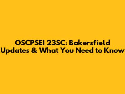 OSCPSEI 23SC: Bakersfield Updates & What You Need To Know