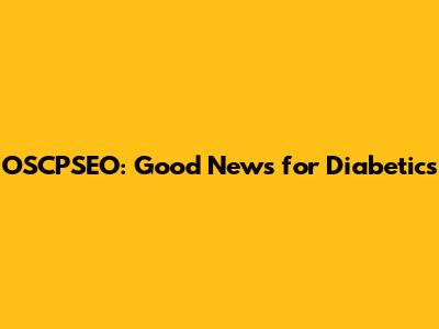 OSCPSEO: Good News For Diabetics