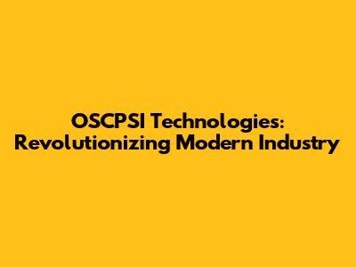 OSCPSI Technologies: Revolutionizing Modern Industry