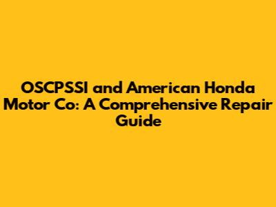 OSCPSSI & American Honda Motor Co. Repair Insights