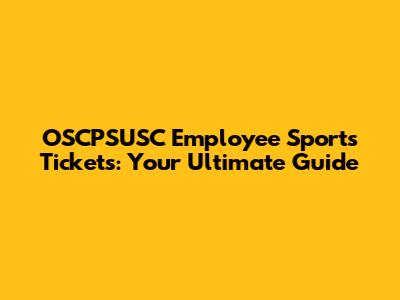 OSCPSUSC Employee Sports Tickets: Your Ultimate Guide