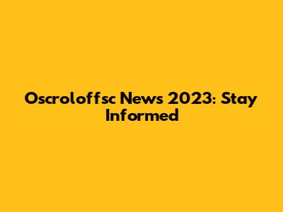 Oscroloffsc News 2023: Latest Updates And Insights