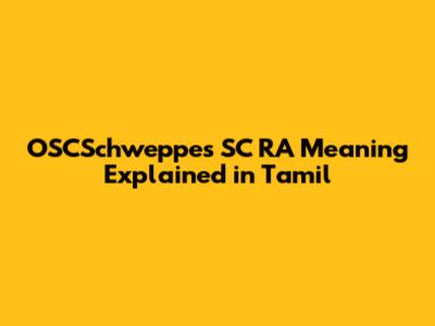 OSCSchweppes SC RA: Meaning Explained In Tamil