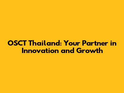 OSCT Thailand: Your Partner In Innovation And Growth