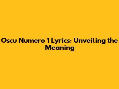 Oscu Numero 1 Lyrics: Unveiling The Meaning