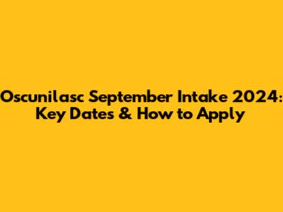Oscunilasc September Intake 2024: Key Dates & How To Apply