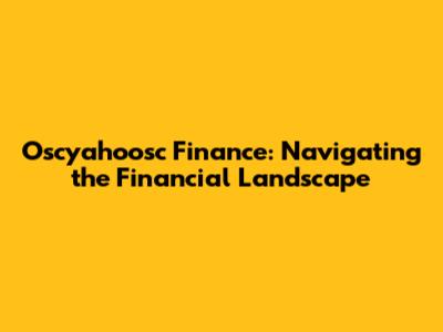 Oscyahoosc Finance: Navigating The Financial Landscape