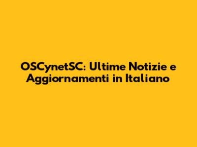 OSCynetSC: Ultime Notizie E Aggiornamenti In Italiano