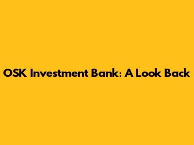 OSK Investment Bank: A Look Back