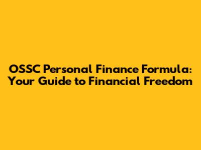OSSC Personal Finance Formula: Your Guide To Financial Freedom