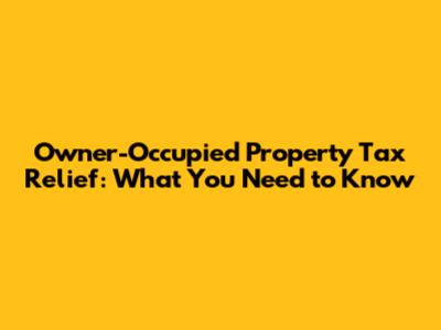 Owner-Occupied Property Tax Relief: What You Need To Know