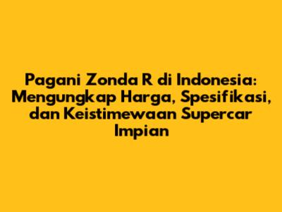 Pagani Zonda R di Indonesia adalah impian bagi banyak penggemar otomotif. Harga Pagani Zonda R yang tinggi mencerminkan eksklusivitas, performa luar biasa, dan desain yang memukau. Spesifikasi Pagani Zonda R yang mengesankan, mulai dari mesin bertenaga tinggi hingga penggunaan material ringan, menjadikan mobil ini sebagai salah satu supercar terbaik di dunia. Keistimewaan Pagani Zonda R, seperti desain ikonik, eksklusivitas, dan pengalaman berkendara yang tak tertandingi, membuatnya menjadi investasi yang berharga dan dambaan para kolektor.