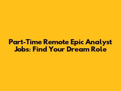 Part-Time Remote Epic Analyst Jobs: Find Your Dream Role