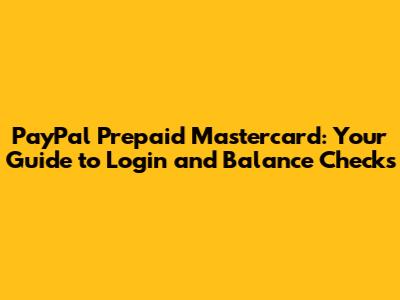 PayPal Prepaid Mastercard: Login & Balance Check Guide