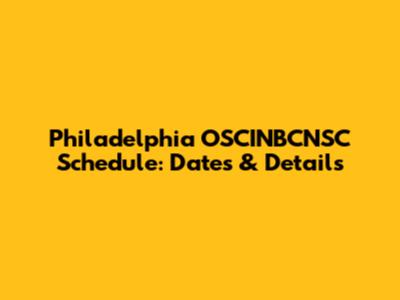 Philadelphia OSCINBCNSC Schedule: Dates & Details