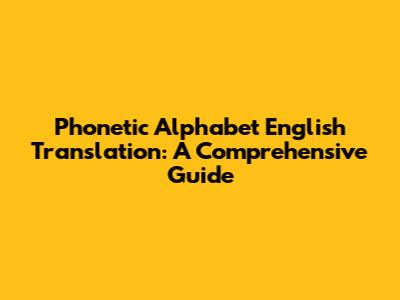 Phonetic Alphabet English Translation: A Comprehensive Guide