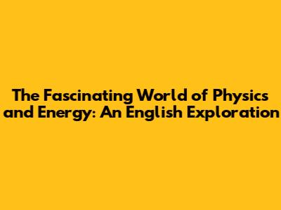 Physics Of Energy: A Comprehensive English Guide