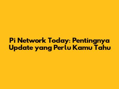 Pi Network Today: Pentingnya Update Yang Perlu Kamu Tahu