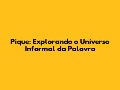 Pique em Diferentes Contextos: As Várias Faces da Palavra