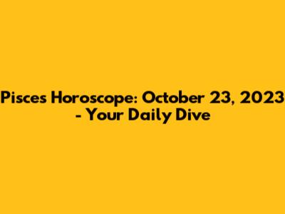 Hey there, Pisces! Let's dive into what the stars are saying about your day on October 23, 2023. As a Pisces, you're known for your dreamy, artistic, and deeply empathetic nature. You're ruled by Neptune, the planet of dreams, illusions, and spirituality, so you're always tuned into the subtle energies around you. Today's forecast is all about navigating those energies, making the most of your intuition, and finding balance in your emotional world. So, grab your favorite cozy blanket, maybe a cup of tea, and let's explore what the cosmos has in store for you, Pisces.