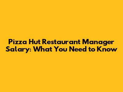 Pizza Hut Restaurant Manager Salary: What You Need To Know