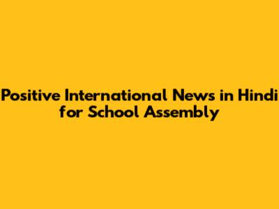 Positive International News In Hindi For School Assembly