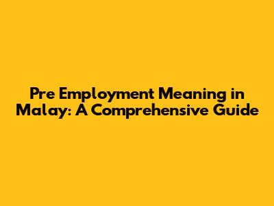 Pre Employment Meaning In Malay: A Comprehensive Guide