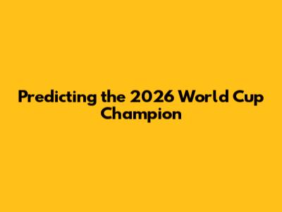 Predicting The 2026 World Cup Champion