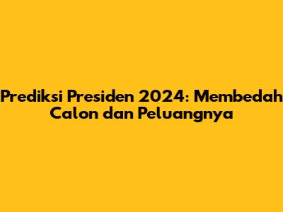 Pilpres 2024 akan menjadi ajang yang menarik dan penting bagi masa depan Indonesia. Prediksi presiden 2024 bukanlah ramalan pasti, tetapi lebih merupakan analisis terhadap berbagai faktor yang mempengaruhi hasil pemilihan. Siapapun yang terpilih sebagai presiden, diharapkan mampu membawa Indonesia menjadi negara yang lebih maju, adil, dan sejahtera.