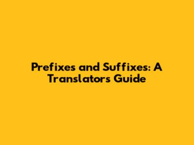 Prefixes And Suffixes: A Translator's Guide