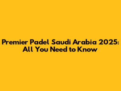 Premier Padel Saudi Arabia 2025: All You Need To Know