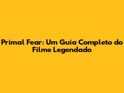 Primal Fear: Um Guia Completo Do Filme Legendado