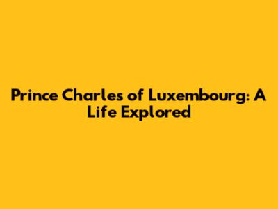 Prince Charles Of Luxembourg: A Life Explored