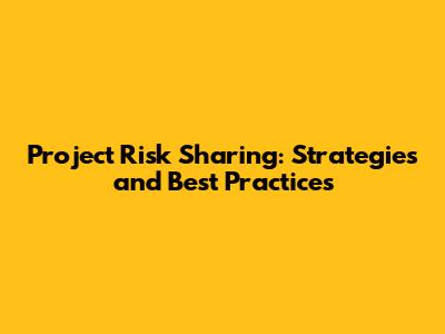 Project Risk Sharing: Strategies And Best Practices